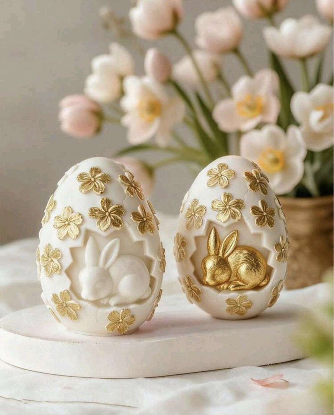 • Σχέδιο: Αυγό με ανάγλυφο λαγουδάκι και λουλούδια