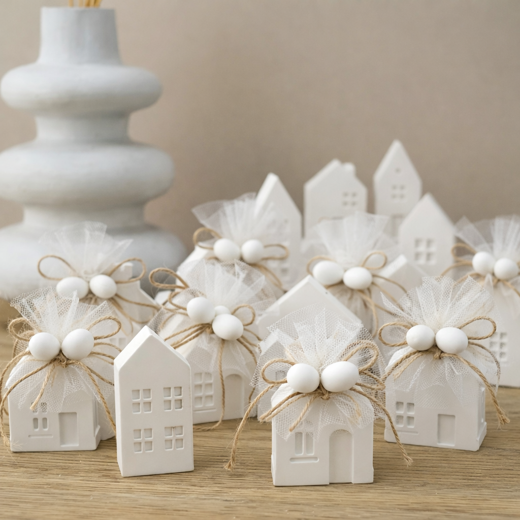 Η Treat Me Well σας προσφέρει μια ολοκληρωμένη πρόταση διακόσμησης και αρωματισμού χώρου σε ένα μοναδικό πακέτο. Το σετ περιλαμβάνει 10 χειροποίητα σπιτάκια σε διάφορα μεγέθη και σχέδια, έτοιμα να μεταμορφώσουν οποιαδήποτε γωνιά του σπιτιού σας σε ένα σκηνικό υψηλής αισθητικής.Η μπομπονιέρα περιλαμβάνει 3 κουφέτα και προσωποποιημένο καρτελάκι, διαμορφωμένο σύμφωνα με τις προτιμήσεις σας.
