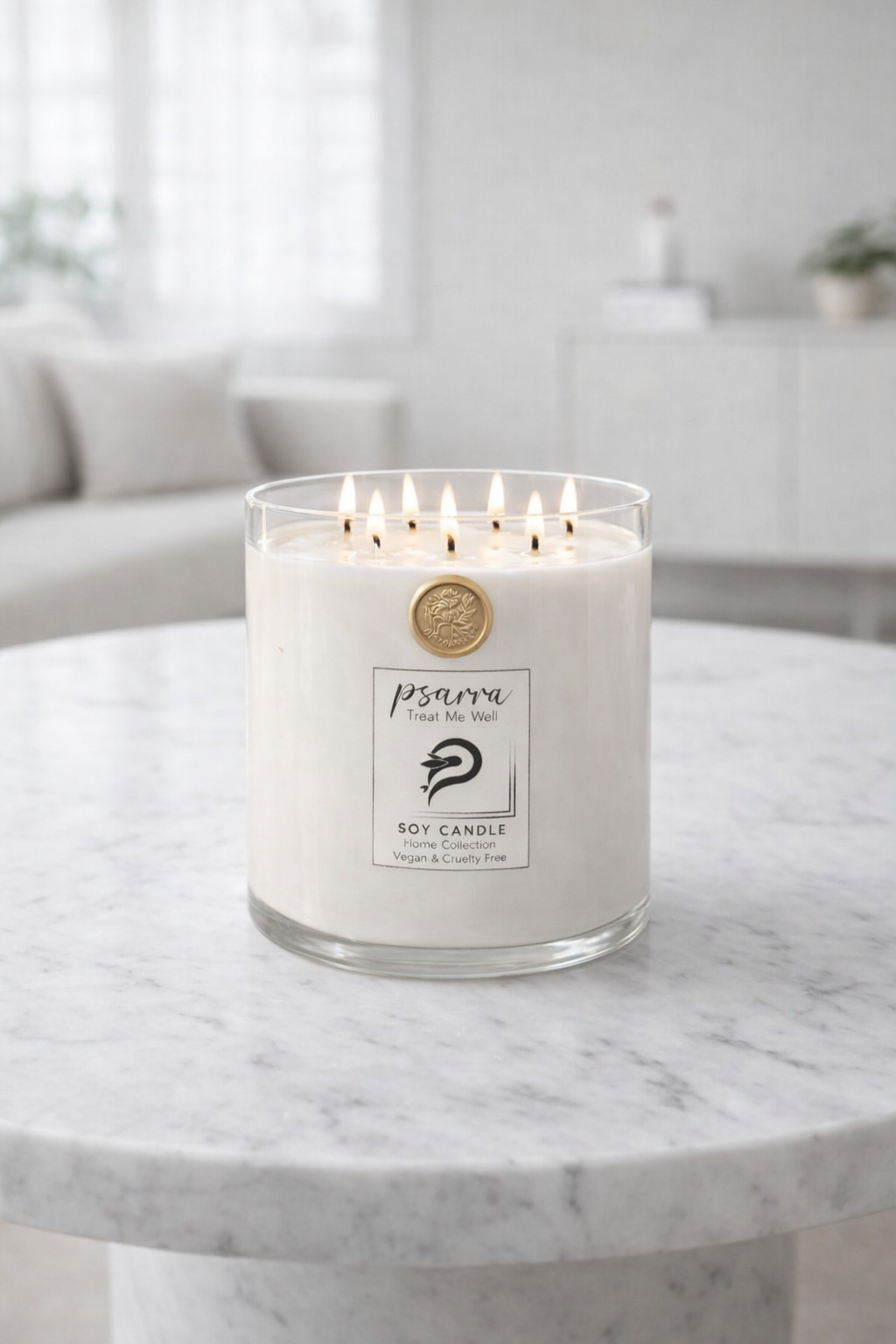 Ένα επιβλητικό χειροποίητο κερί σόγιας, σχεδιασμένο να μεταμορφώνει τον χώρο σου με τη ζεστή, σταθερή και ομοιόμορφη φλόγα των 6 βαμβακερών φυτιλιών του.