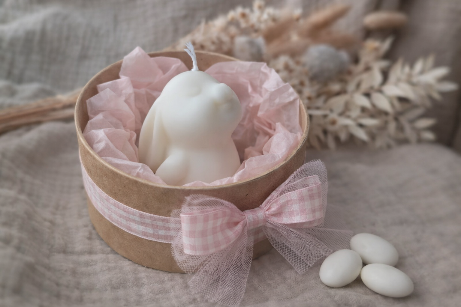 Σε τέσσερις εκλεπτυσμένες αποχρώσεις — λευκό, απαλό ροζ, απαλό κίτρινο και φυσικό ivory — γίνεται το πιο γλυκό στοιχείο διακόσμησης για το σπίτι, το παιδικό δωμάτιο ή ένα ιδιαίτερο πασχαλινό τραπέζι.